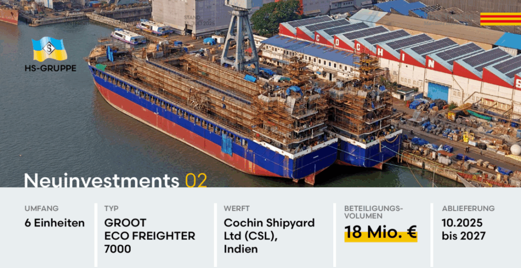 General Cargo Schiffe vom Typ Groot ECO Freighter 7.000 mit einer Kapazität von jeweils 7.000 tdw. / geplante Auslieferung und Infahrtsetzung 1. Halbjahr 2025 in Zusammenarbeit mit unserem Partner, der HS Bereederungs GmbH & Co. KG, Haren/Ems.